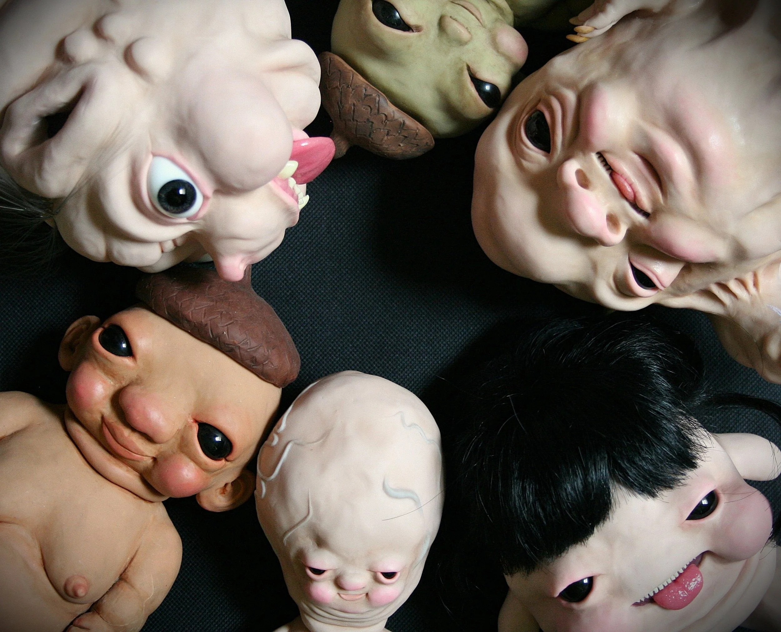 All sculptures are made out of hybrid, plastic/rubber polymer clay.